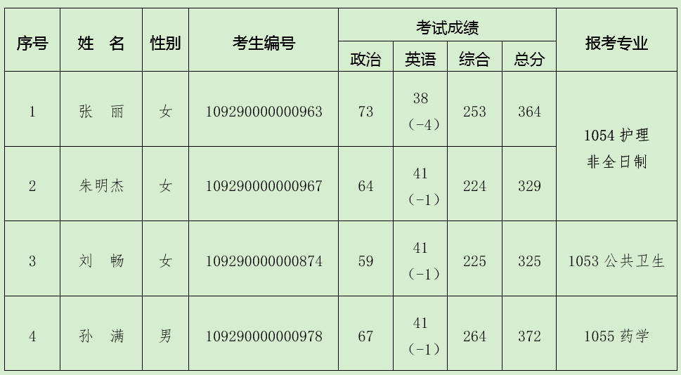 根据我校复试方案并结合我校实际,经两名副教授以上专家推荐、学校审查、报请校招生领导小组同意,经湖北省招生考试办公室审定,拟给予张丽、朱明杰、刘畅、孙满4名同学破格复试机会,现予以公示。