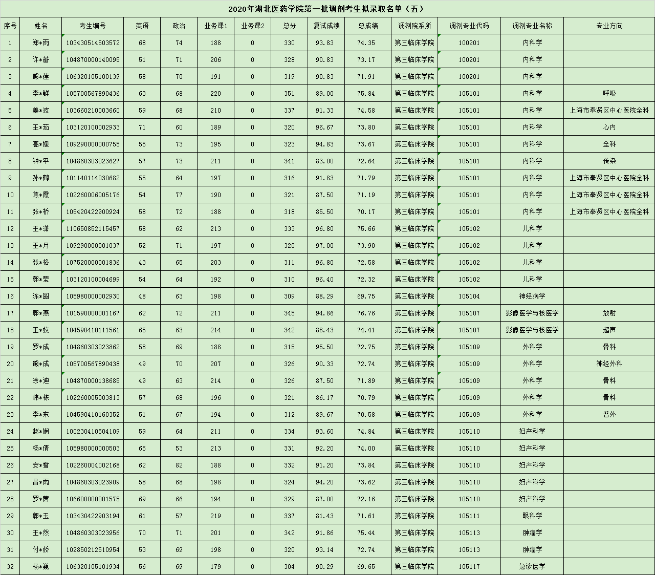 根据《2020年全国硕士研究生招生工作管理规定》(教学〔2019〕6号)和湖北省招办的有关文件精神,经过学校研究生教育工作领导小组讨论,现将第一批调剂考生拟录取名单予以公示(共32人),公示期5月31日-6月12日,接受广大考生和社会的监督。联系电话:0719-8878051;举报电话:0719-8891077(纪委)。