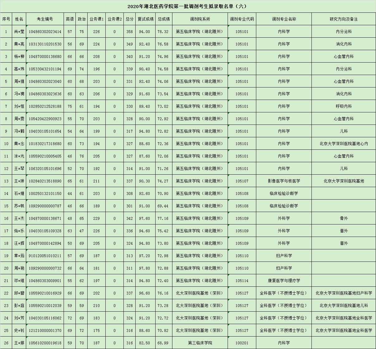 根据《2020年全国硕士研究生招生工作管理规定》(教学〔2019〕6号)和湖北省招办的有关文件精神,经过学校研究生教育工作领导小组讨论,现将第一批调剂考生拟录取名单予以公示(共26人),公示期6月1日-6月12日,接受广大考生和社会的监督。联系电话:0719-8878051;举报电话:0719-8891077(纪委)。