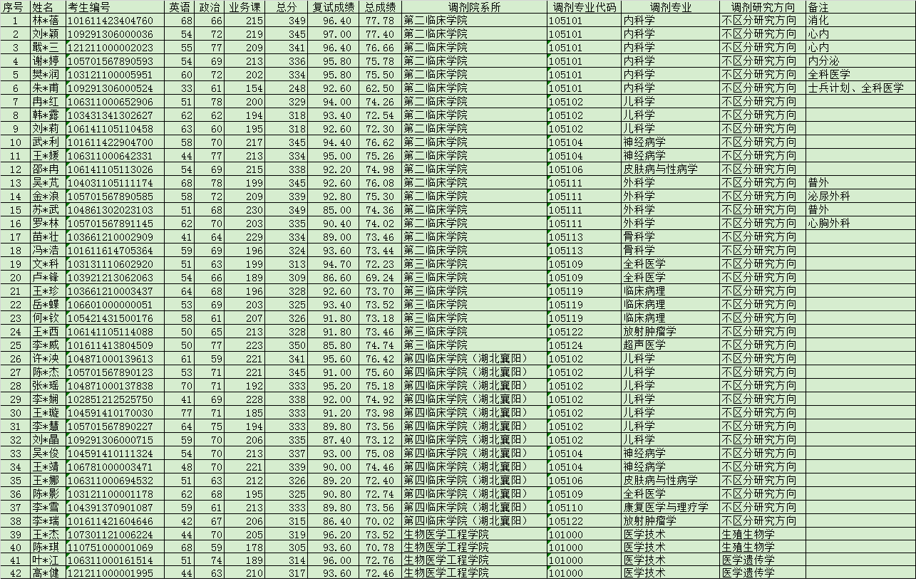 2021年湖北医药学院第一批调剂考生拟录取名单含考试成绩(二)