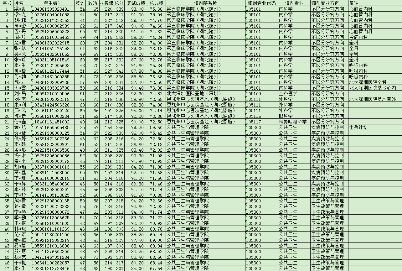 2021年湖北医药学院第一批调剂考生拟录取名单(五)