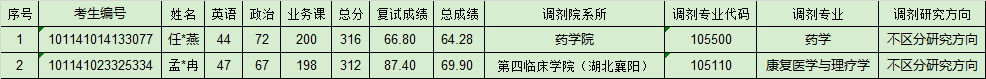 2021年湖北医药学院第二批调剂考生拟录取名单含考生成绩(二)