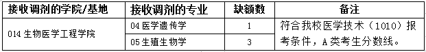 二、生物医药工程学院缺额信息详见下表,其他学院缺额信息请密切关注我校研究生院网站后续通知。
