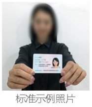 第二项 本人手持身份证照,JPG或JPEG格式,照片大小10M以内。拍摄时,本人手持身份证,将持证的手臂和上半身整个拍进照片,头部和肩部要端正,头发不得遮挡脸部或造成阴影,要露出耳朵等五官;身份证上的所有信息清晰可见、完整,没有被遮挡或者被手指捏住。