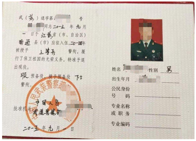 报考“退役大学生士兵专项硕士研究生招生计划”的考生上传本人《入伍批准书》和《退出现役证》内页图片。