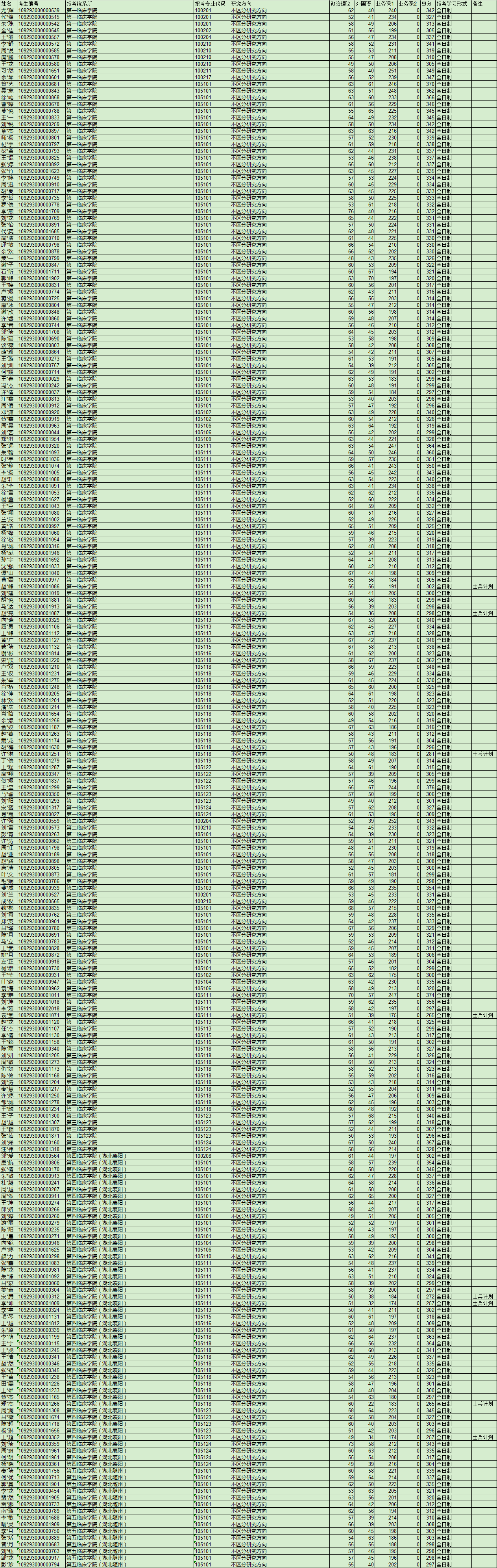 (2)复试结束后,按照考生总评成绩排序,确定拟录取考生名单、录取专业和对应导师名单。当考生总评成绩相同时,初试成绩高排名在前,若初试成绩也相同时,则以外国语和政治理论成绩相加得分高排名在前。