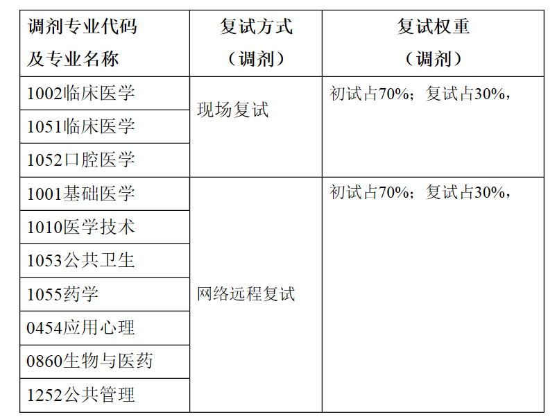 2.第二阶段:调剂考生复试,结合学科(专业)特点采用不同的复试方式,详见下表;
