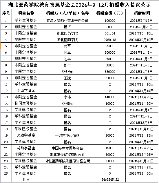 教育发展基金会2024年9-12月捐赠收入情况公示
