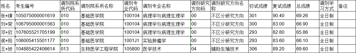 2025年湖北医药学院第六批调剂考生拟录取名单(一)